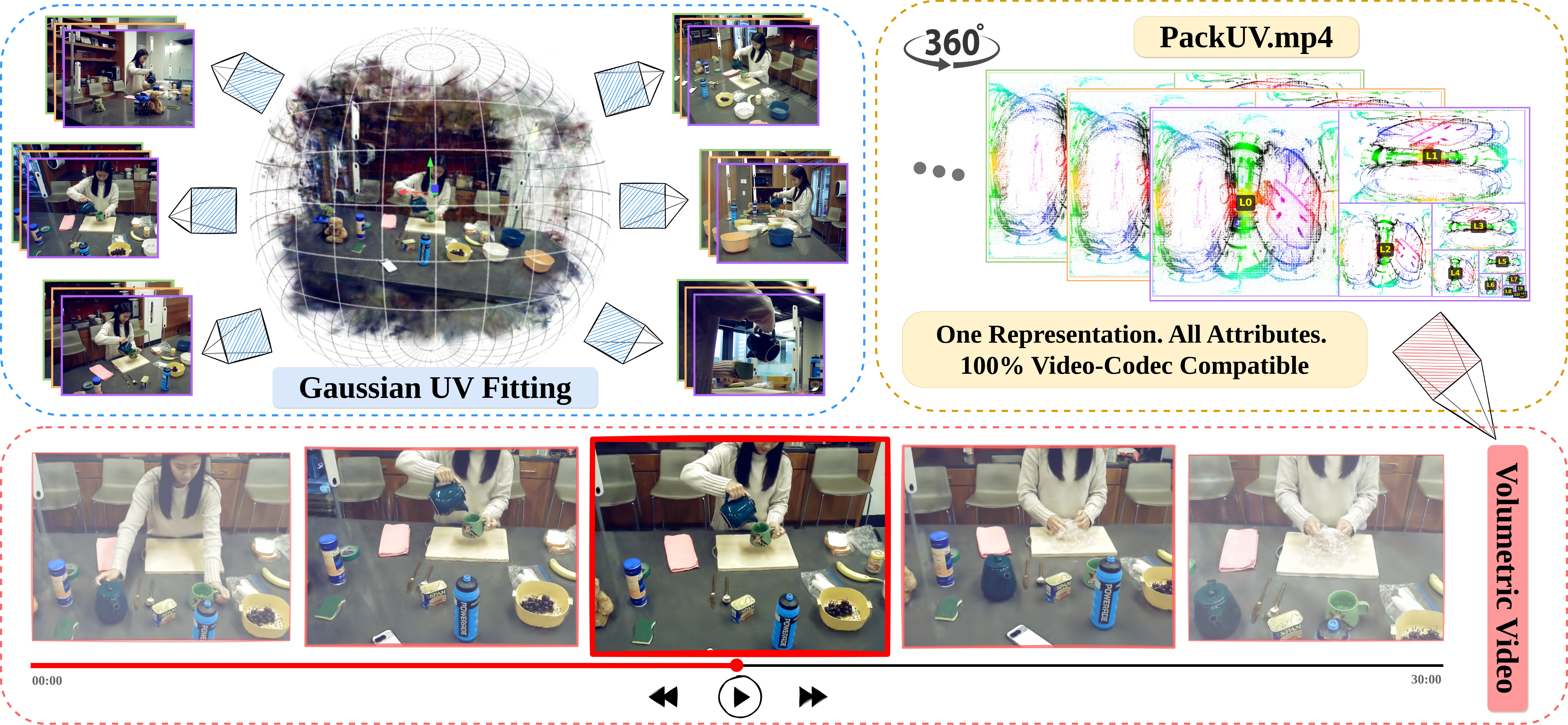 PackUV: Packed Gaussian UV Maps for 4D Volumetric Video